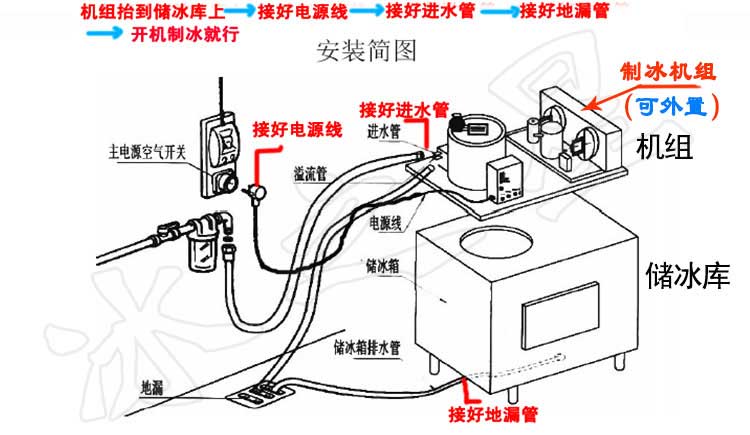 如果室內(nèi)通風(fēng)散熱效果不好,也可以做成分體式,可以把機(jī)組的風(fēng)冷冷凝器或制冰機(jī)組把安裝在室外進(jìn)行散熱。
